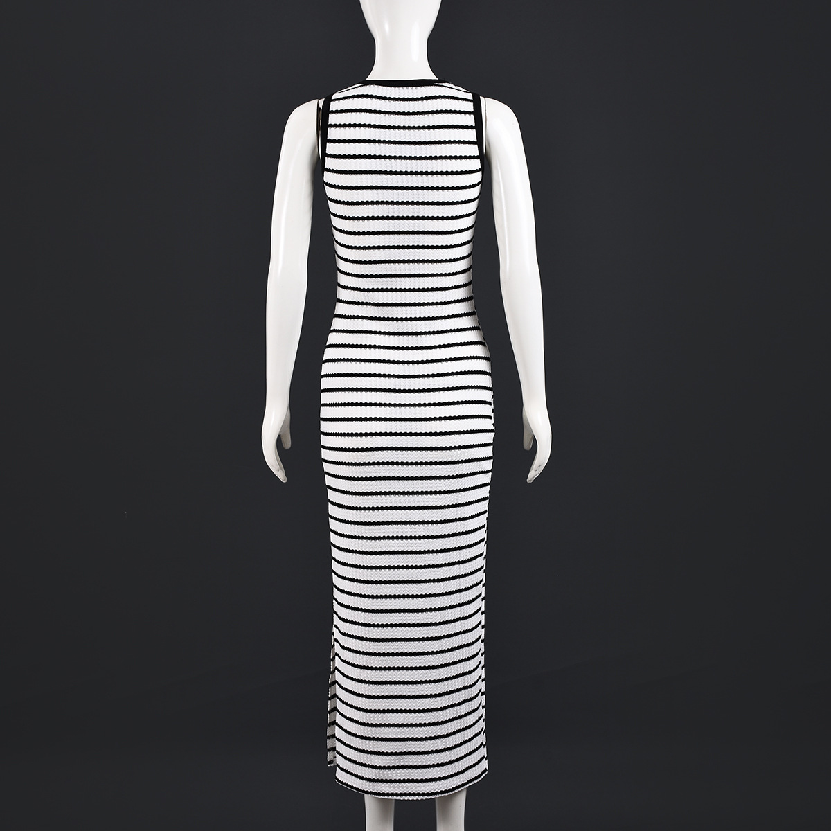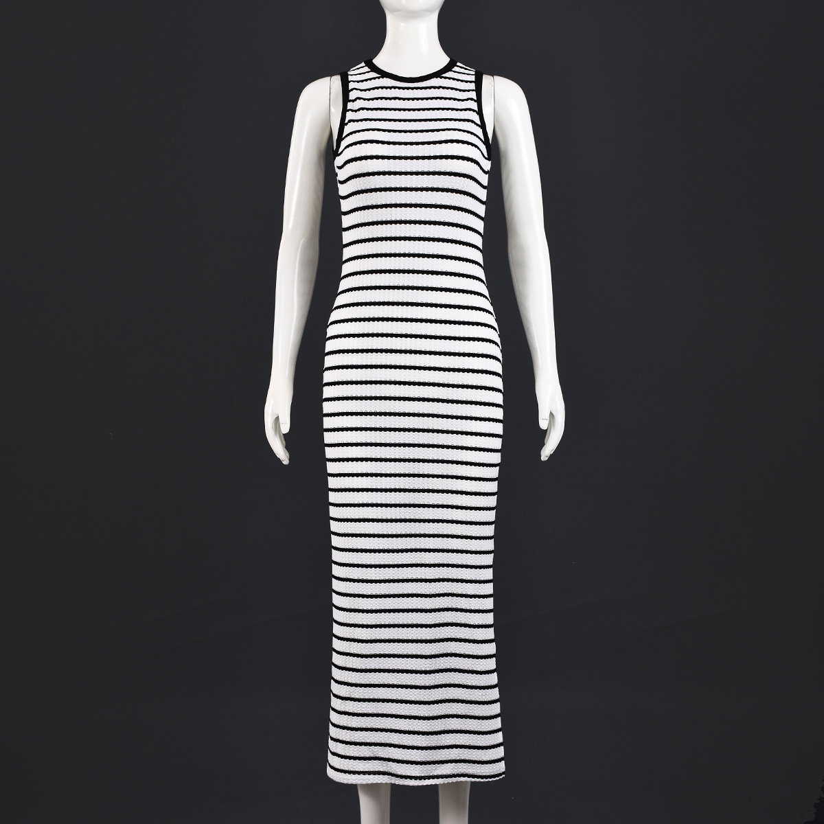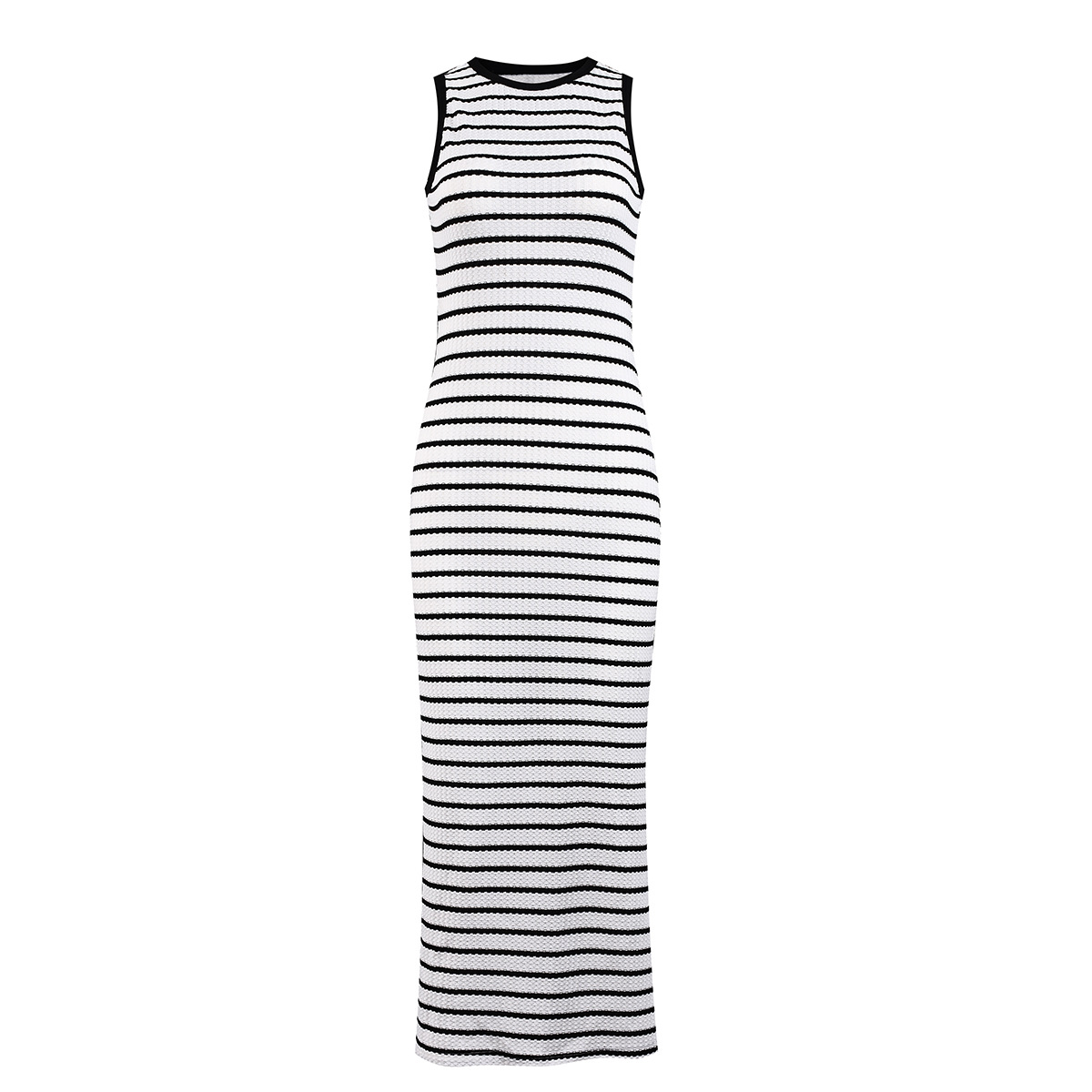 This sleeveless dress features a round neckline and slim elastic fit that hugs your curves comfortably while providing freedom of movement. The classic striped pattern adds visual interest and elongates your silhouette, making it a versatile wardrobe essential.