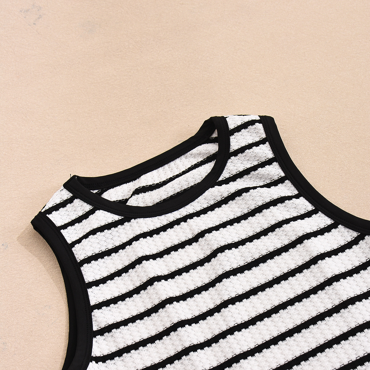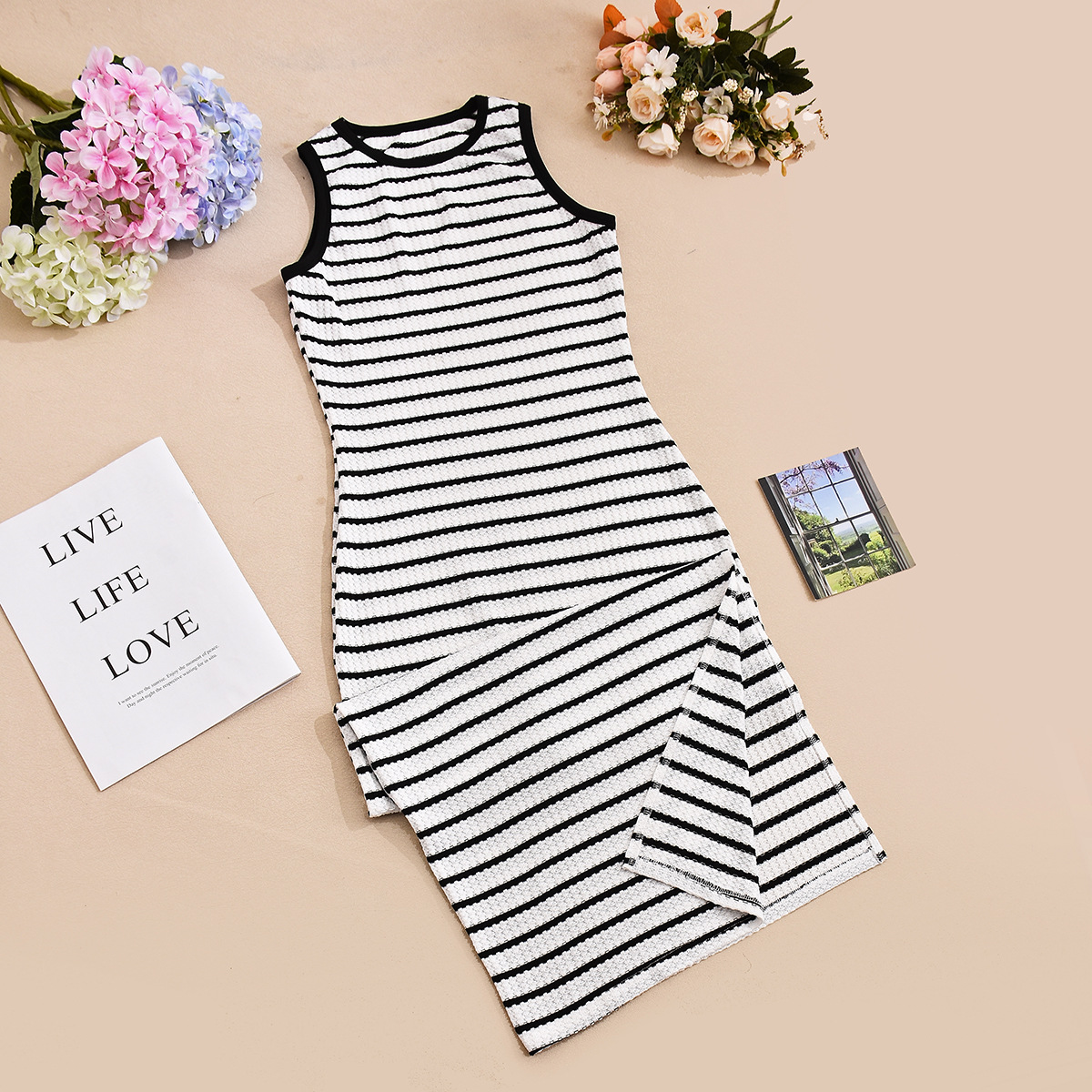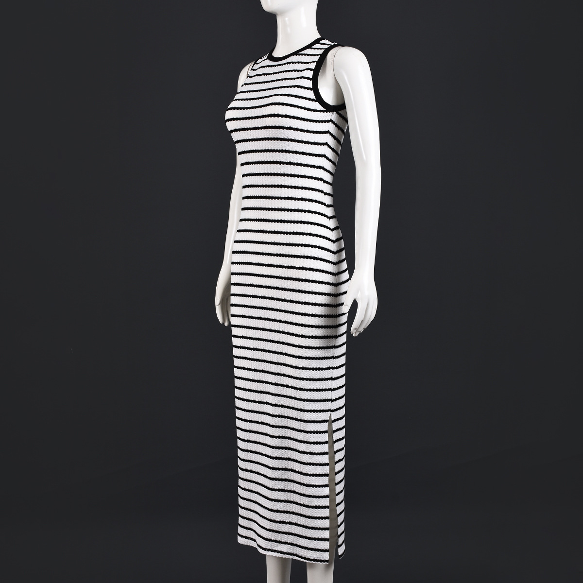 This sleeveless dress features a round neckline and slim elastic fit that hugs your curves comfortably while providing freedom of movement. The classic striped pattern adds visual interest and elongates your silhouette, making it a versatile wardrobe essential.