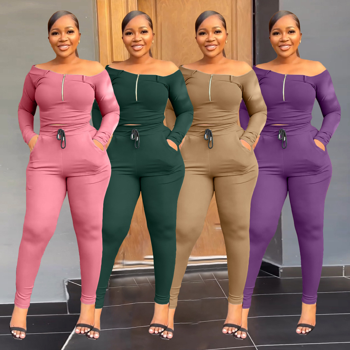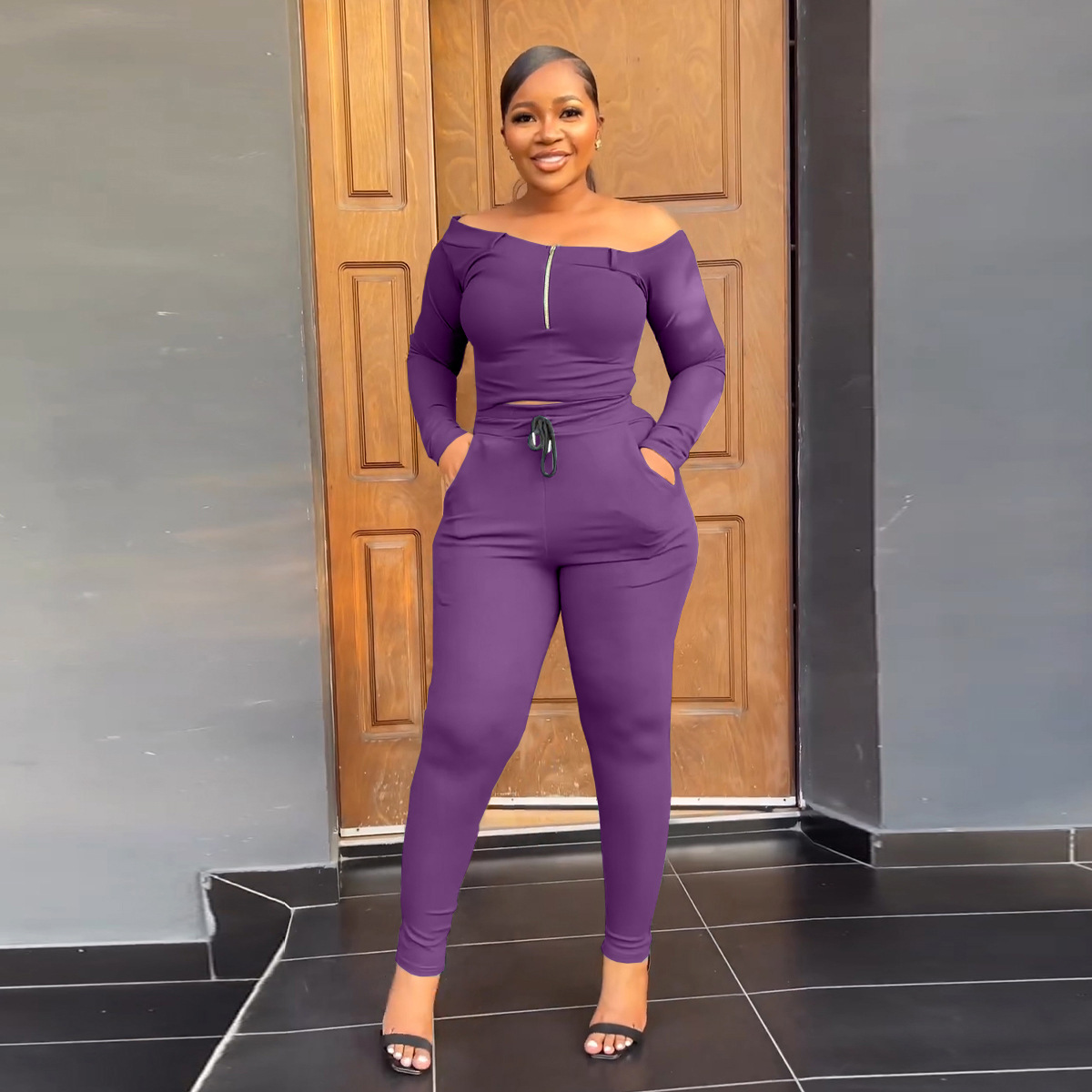 # Women's Fashion Casual Exercise Off-Shoulder Suit Effortlessly blend style with performance in this versatile off-shoulder suit, designed for the modern woman who refuses to compromise. The relaxed silhouette flatters while allowing full range of motion, making it equally suited for casual outings or light workouts. Premium fabric construction ensures durability and comfort throughout your day, while the contemporary off-shoulder cut delivers an on-trend aesthetic that transitions seamlessly from gym to street. Perfect for layering or wearing solo, this piece becomes a wardrobe essential for those seeking polished casualness with functional appeal.